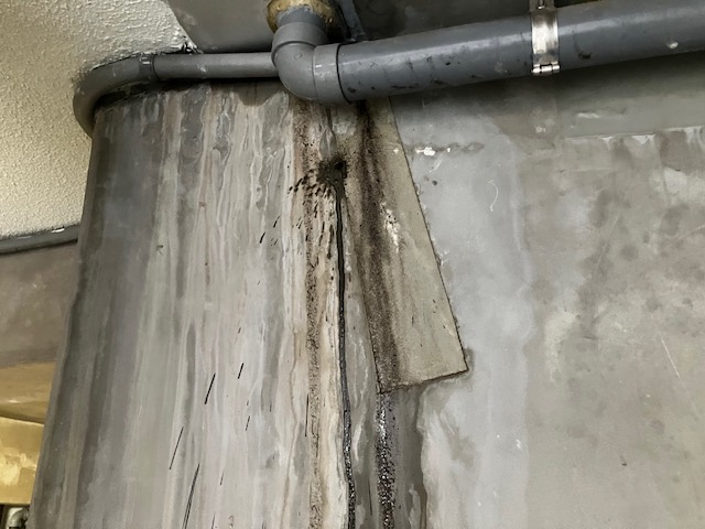 ひび割れ箇所をふさいで雨染みをなくす工事です。